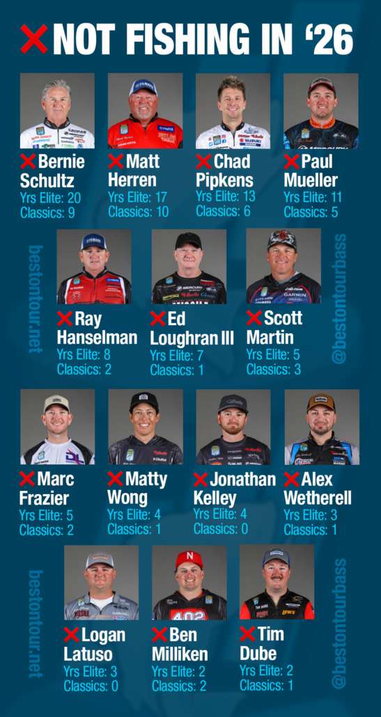 These anglers are not returning to the Bassmaster Elite Series in 2026 for various reasons. Keep reading to learn more: